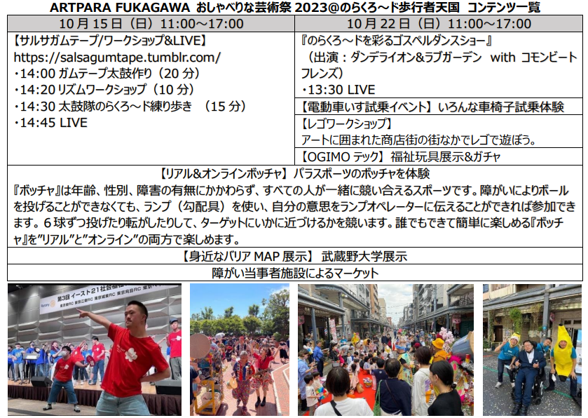 ARTPARA FUKAGAWA おしゃべりな芸術祭2023@のらくろ〜ド歩行者天国 コンテンツ