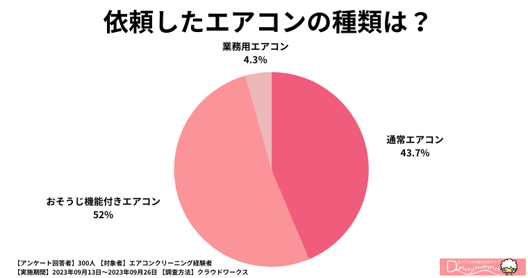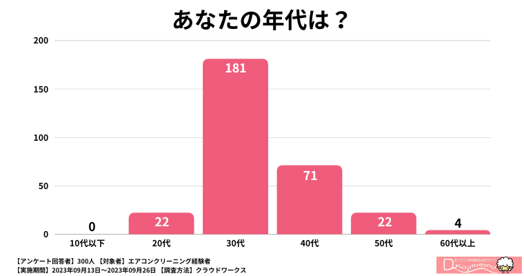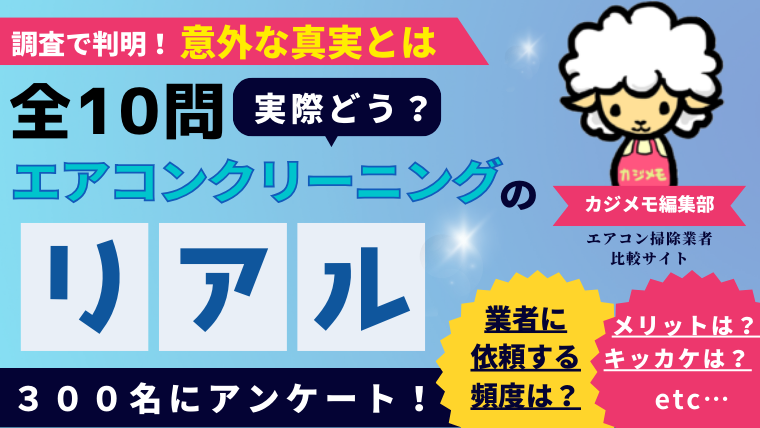 そんなエアコンクリーニングの実態を知るため、過去にエアコンクリーニングを利用したことがある300人を対象に、2023年09月13日~2023年09月26日の期間、クラウドワークスを利用してアンケート調査を行いました。