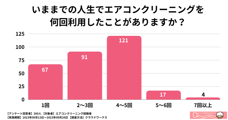 いままでの人生でエアコンクリーニングを何回利用したことがありますか?