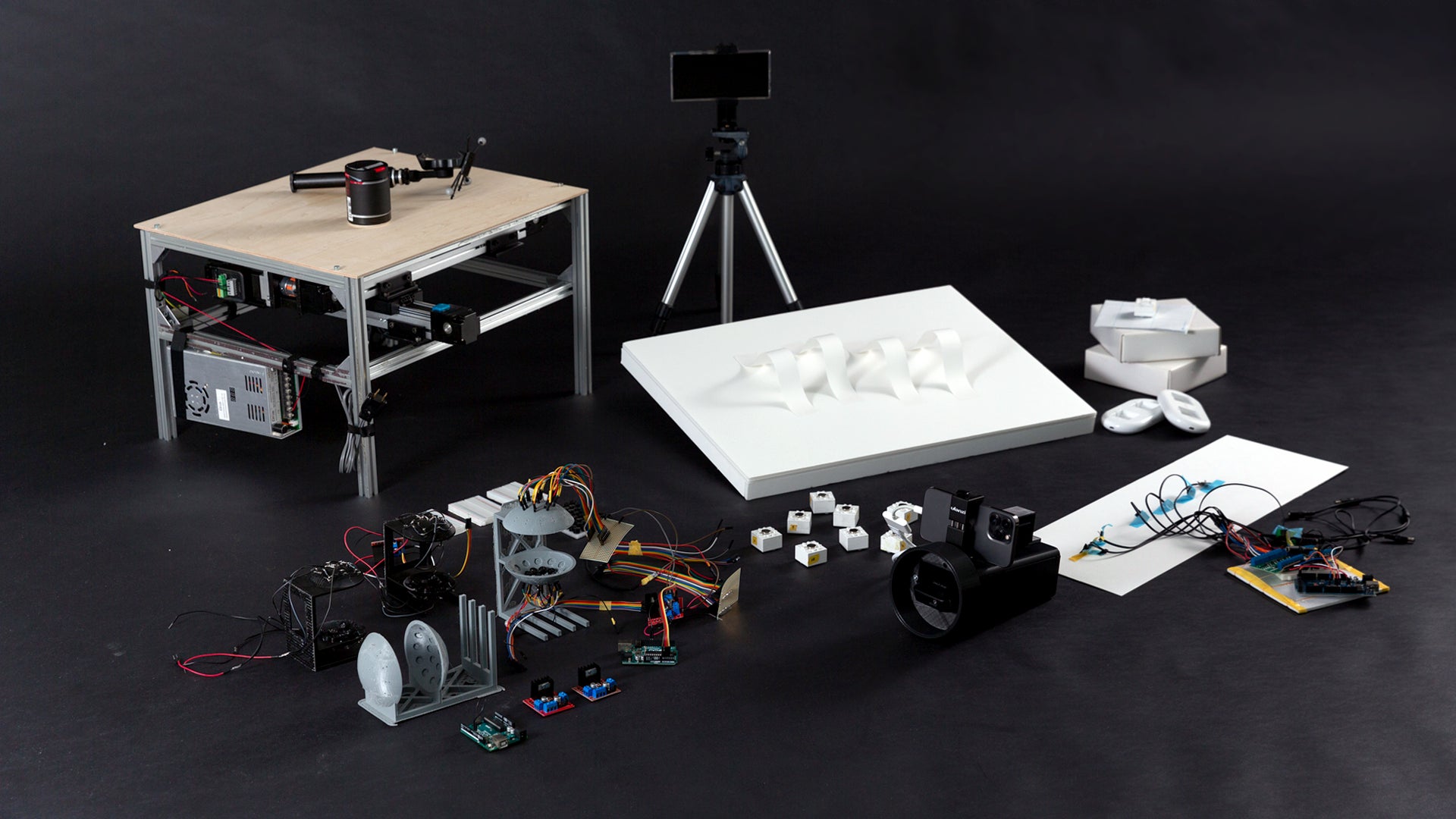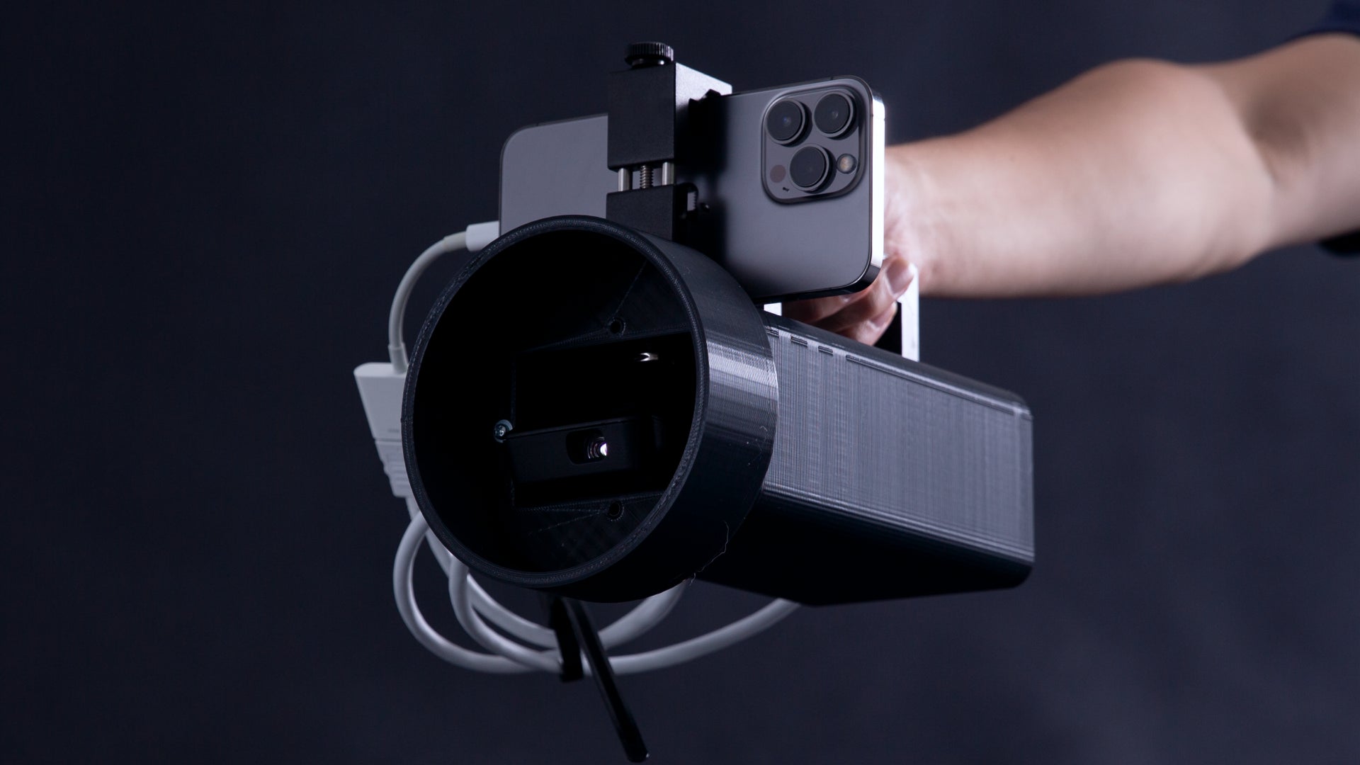 スマートフォン上でのAR(拡張現実)体験を小型プロジェクターを使用して拡張する装置。通常、AR体験はスマートフォンの画面内に制限されることが多いが、この装置を使うことで現実空間にARコンテンツを投影し、より没入感のある体験を提供できる。さらに、1台の端末で複数の人が同じAR体験を共有できるため、コラボレーションやエンターテインメントにも活用できるプロトタイプ。