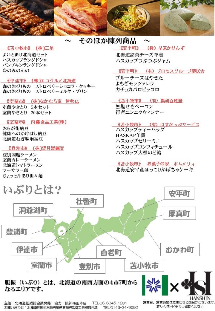 北海道胆振総合振興局では、㈱阪急阪神百貨店 阪神梅田本店の協力のもと、10月17日(火)~22日(日)の6日間、阪神梅田本店で初めて「北海道いぶりフェア」を開催します。