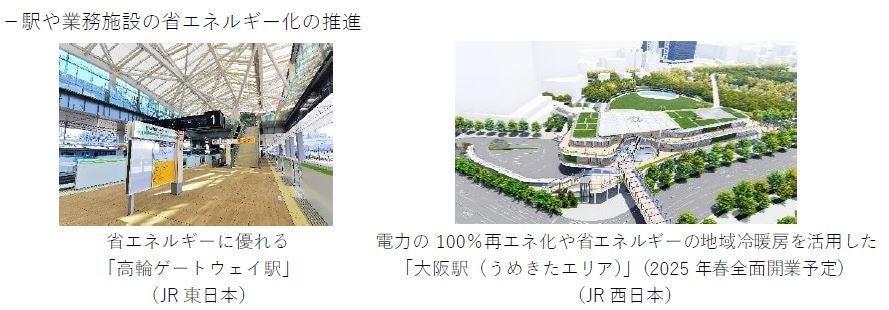 また、各鉄道事業者においては、脱炭素社会への移行に向けて、省エネルギーや再生可能エネルギーの導入といったCO2排出削減の取り組みを通じて、鉄道の環境優位性をさらに高めていきます。