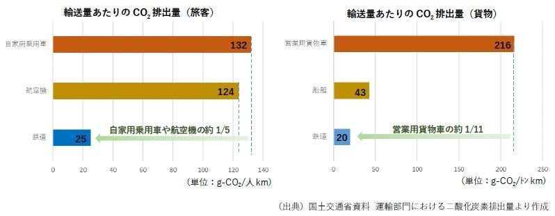 運輸部門全体のカーボンニュートラルに向け、自動車、航空機、船舶、鉄道といったそれぞれの輸送モードにおける脱炭素化の取り組みを進めるとともに、旅客輸送と貨物輸送の双方において、お客様の目的に応じて合理的な範囲で、相対的に低炭素な輸送モードのさらなる活用(モーダルシフト)が併せて実行されることが有効です。