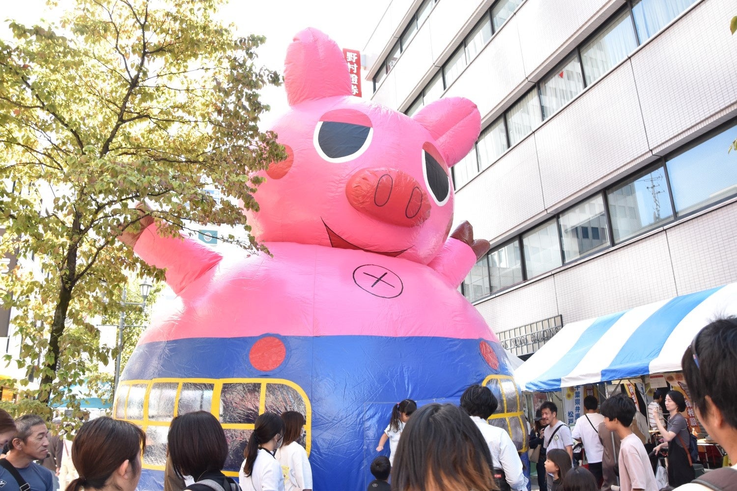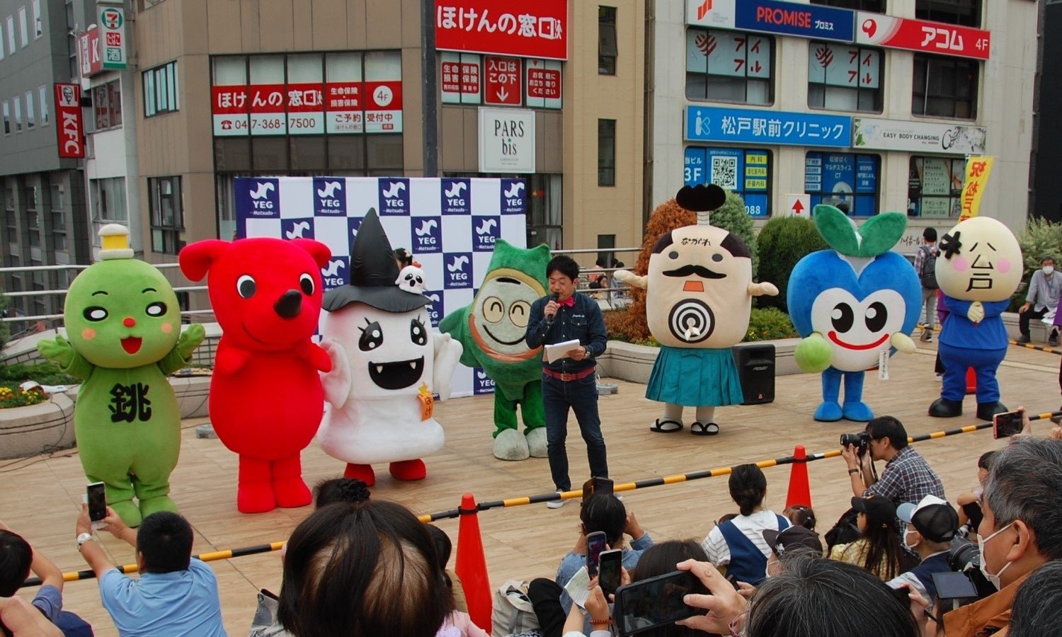 きてみてまつど通りには大きな豚さんが出現!また、松戸駅西口のデッキ上では松戸にちなんだキャラクターが集結し、会場を盛り上げてくれました。