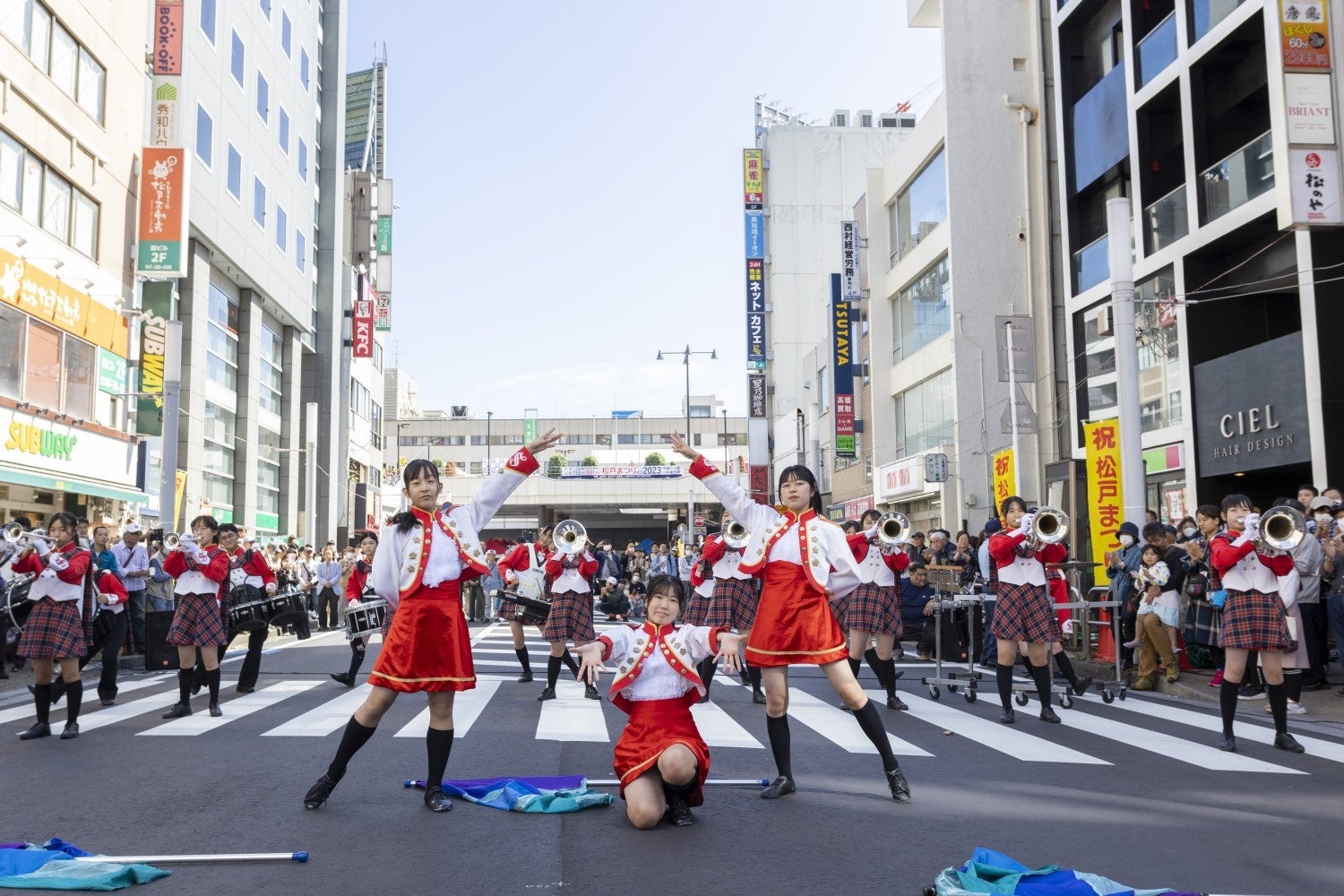 音楽パレードには松戸市消防局の消防音楽隊や中部小学校、常盤平第二小学校、上本郷第二小学校、小金南中学校が出演し、軽快な演奏を行いながら松戸駅西口を行進しました。
