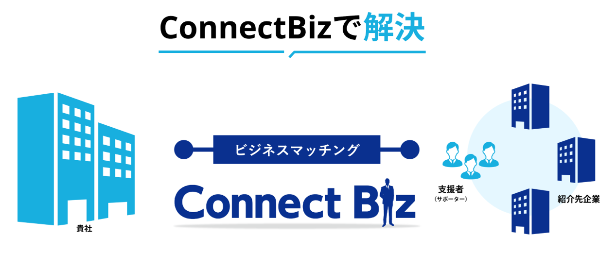 ターゲット先企業との接点を持ちたい企業(依頼企業)と、依頼企業のターゲット先企業の決裁者や担当者等のキーマンとのつながりを持つ個人(サポーター)がConnectBiz内で依頼企業とサポーターとのマッチング及び、サポーターによるアポイントのセッティングを目的としたプラットフォームサービスです。
