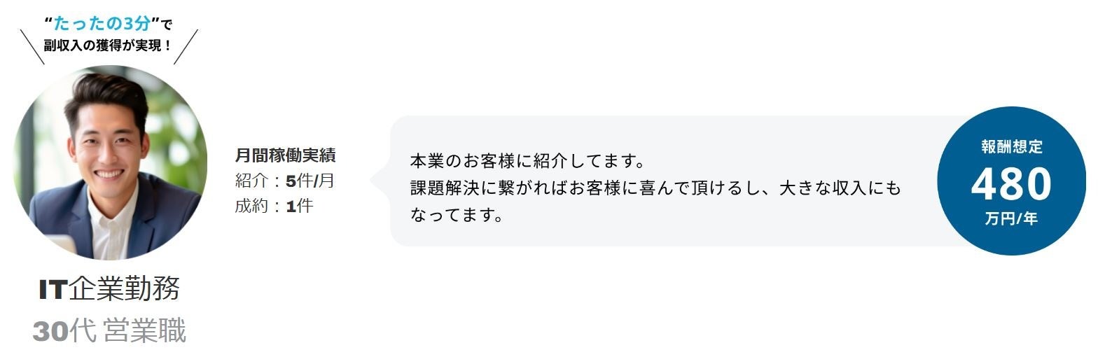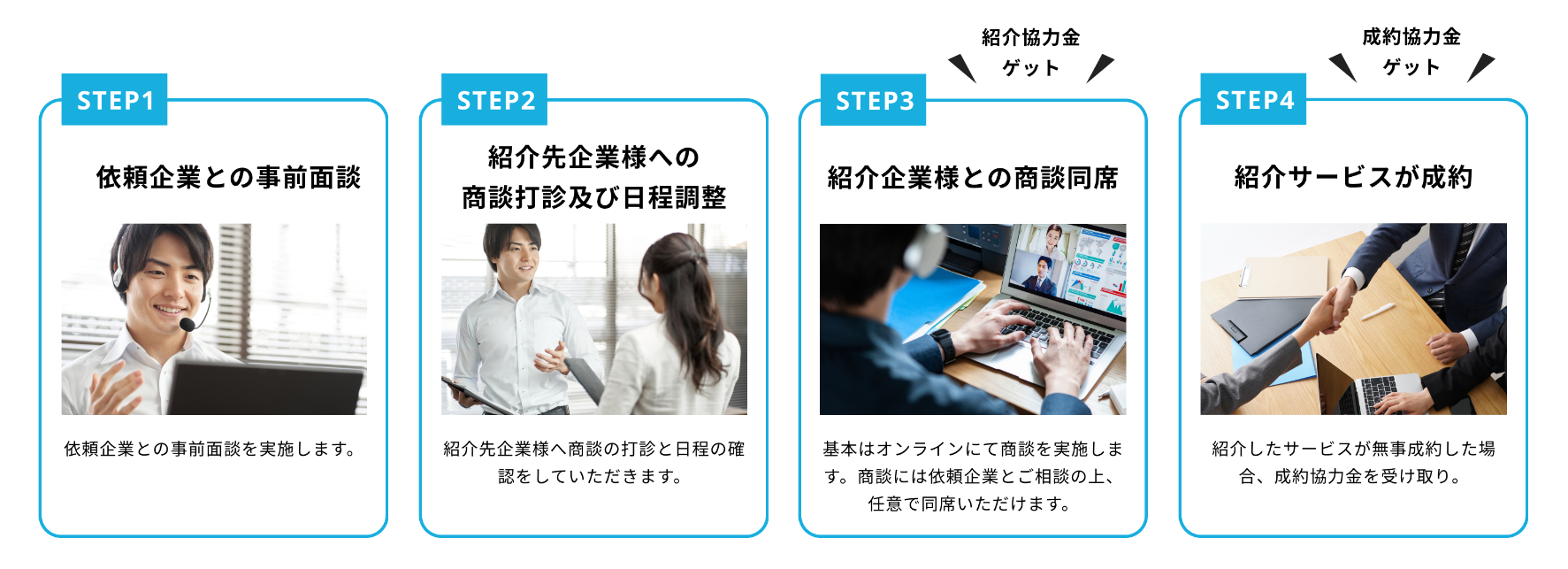 ・紹介協力金=企業とお知り合いが商談が実施された場合。