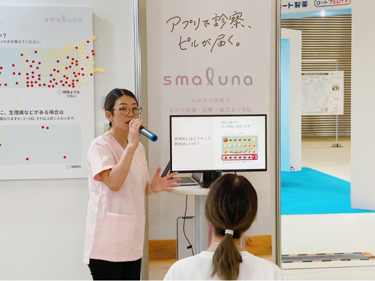 また、今回、スマルナ初の取り組みとして、ブース内に”EMSにより腹部を刺激することで生理痛を体験できる装置”「ピリオノイド」を用意しました。生理痛は個人差があり、女性同士であっても痛みの度合いを共有することが難しい場合が多くあります。生理痛に対して性別問わず理解を深めるきっかけとなればと考え、ブースに訪れたたくさんの方に生理痛体験をしていただきました。