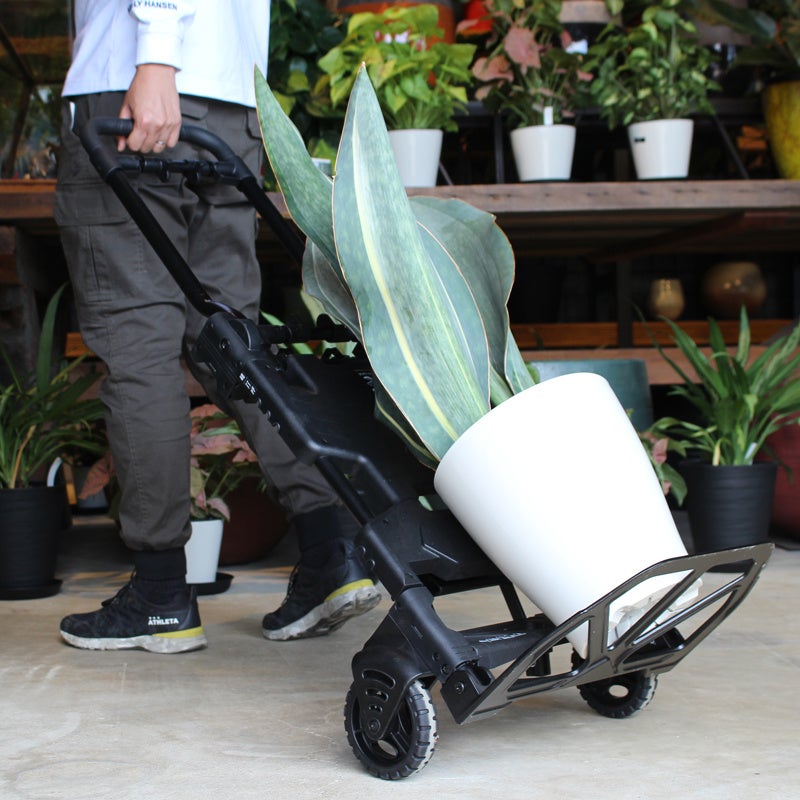 二輪台車の小回りの良さと四輪台車の安定感を兼ね備えた次世代カート。収納時は薄さ約13cmのコンパクト形状になり、早押し機の持ち運びにも便利です。アウトドアシーンに映える秀逸なデザインにも注目。