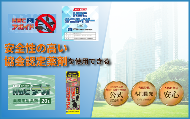協会で開発された薬剤は人体やペットに無害で安心して使用できるのも大きなメリットです。