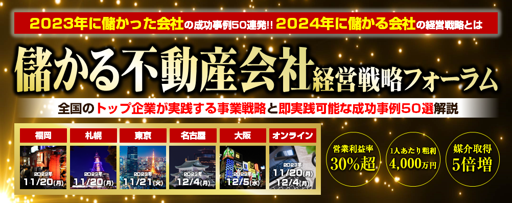 【全国横断(オンライン開催あり)儲かる不動産会社 経営戦略フォーラム2023】