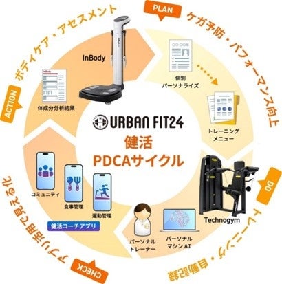 独自アプリ: 健康寿命延伸にヘルスケアデータ活用のアーバンフィット独自のフィットネスアプリを提供。