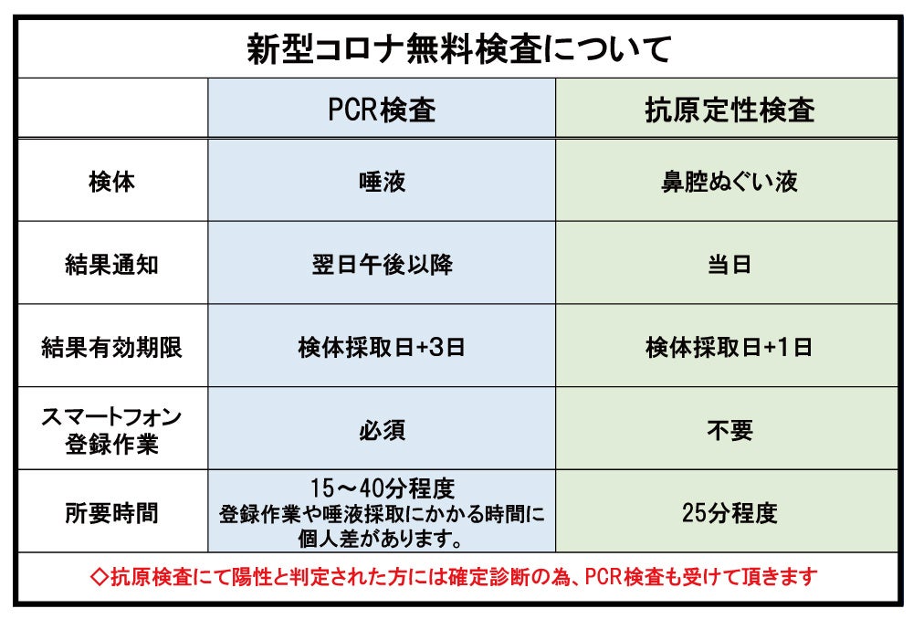 PCR検査の場合→検査の翌日または翌々日に通知予定(当日来訪した際に確認ください)
