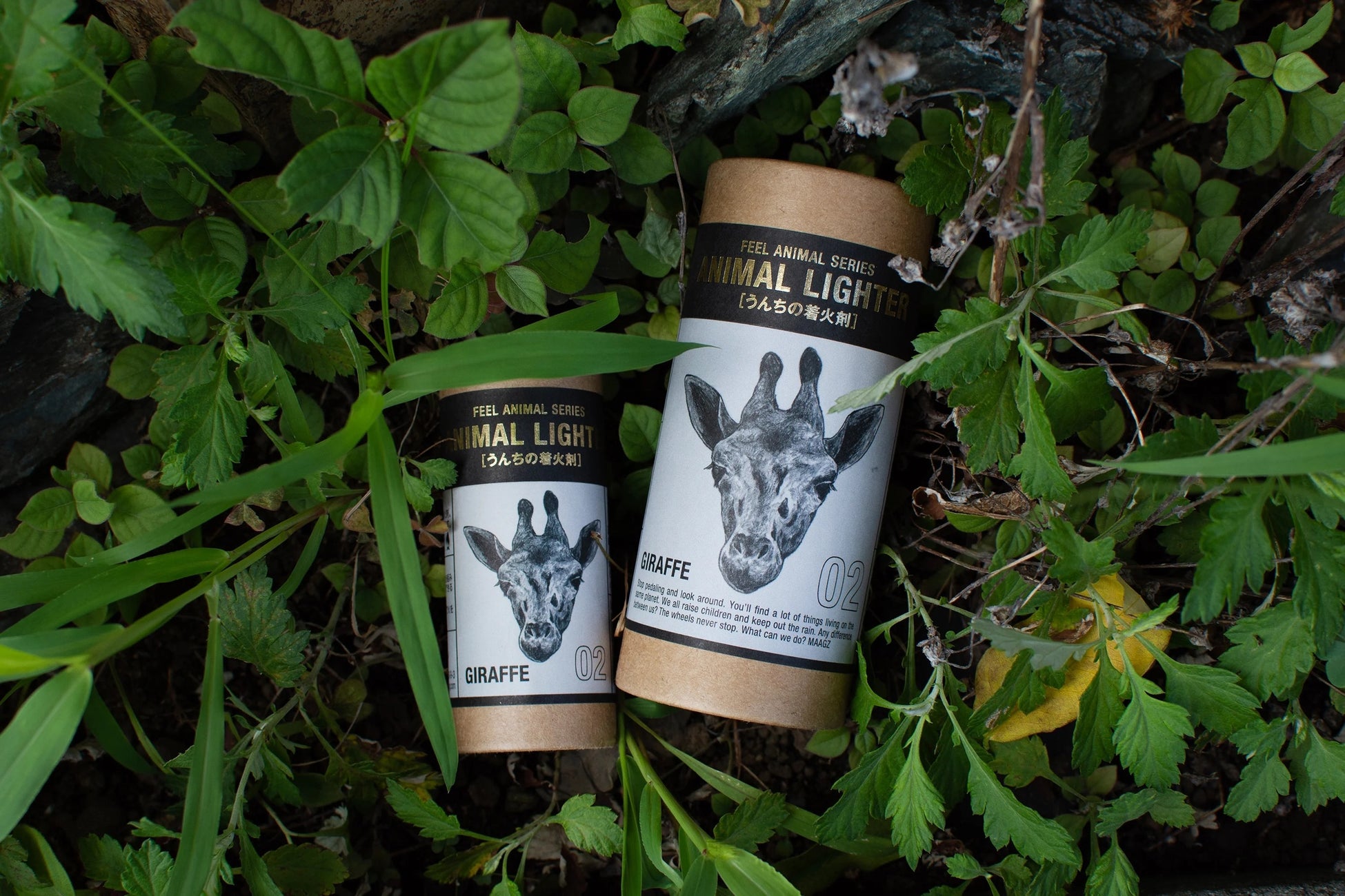 パッケージに描かれた草食動物の糞を主原料にした、MAAGZオリジナルの着火剤。焚き火の際に使うアイテムです。「自然との循環」をテーマにしており、売り上の一部は野生動物の保護活動に役立てられます。