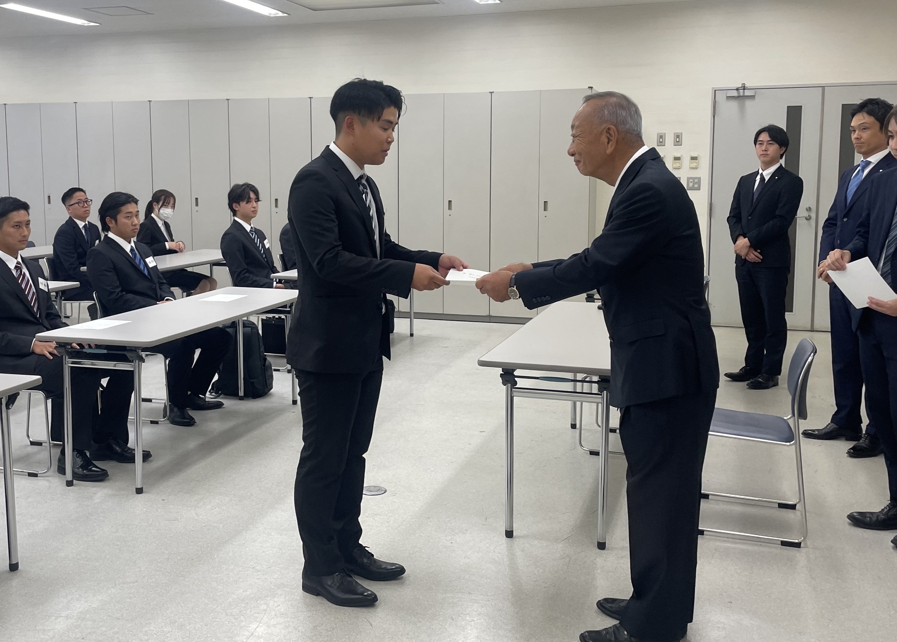 開催の背景としては、近年、新卒採用市場では売り手市場となり、人手不足が深刻化している中、前年度の内定者(新卒1年目社員)からの要望を受け、オンラインではなく内定者同士や内定者と社員の対面での交流の場として、内定式を開催致しました。