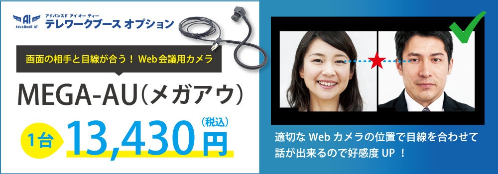 また、大事な商談や就職活動の面接などをオンラインで行う方は「MEGA-AU(メガアウ)」がおすすめです。目線の位置にカメラを固定出来るので、画面越しでも相手と目線を合わせて会話ができ、信頼感アップや誠実さをアピール出来ます。