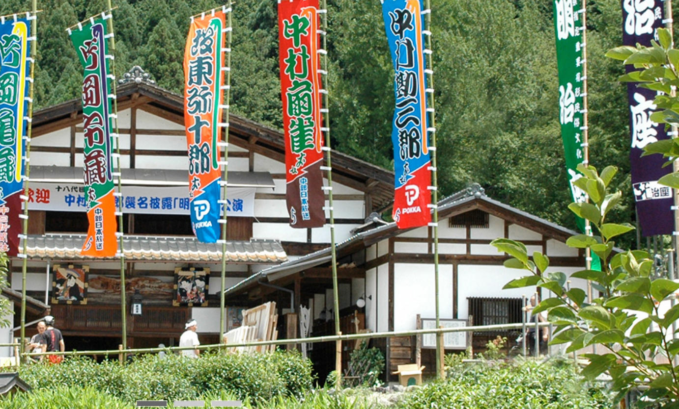 村芝居の全盛期、明治27年に多くの村人の力によって創建された芝居小屋。岐阜県東濃地方、特に木曽川・飛騨川・南北街道に囲まれた一帯では、劇場形式の芝居小屋が60棟以上も建てられたが、その多くが、時代の波のなかやがて取り壊されることとなる。明治座はそうした芝居小屋の最も発達した姿を、今に伝える貴重な姿を残している。