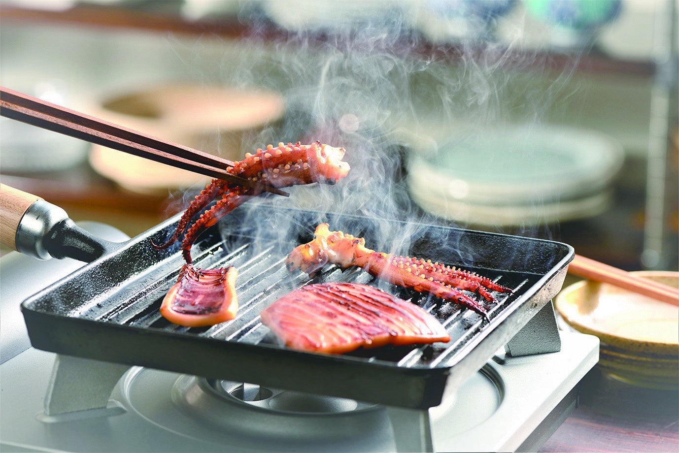 水揚げ直後に瞬間冷凍し焼き上げた「いかのふっくら焼き」や新潟名物「揚げしんじょう」の揚げたてを今年の新酒と会場でお召し上がりください。日本酒愛好者にはたまらない組み合わせです!!