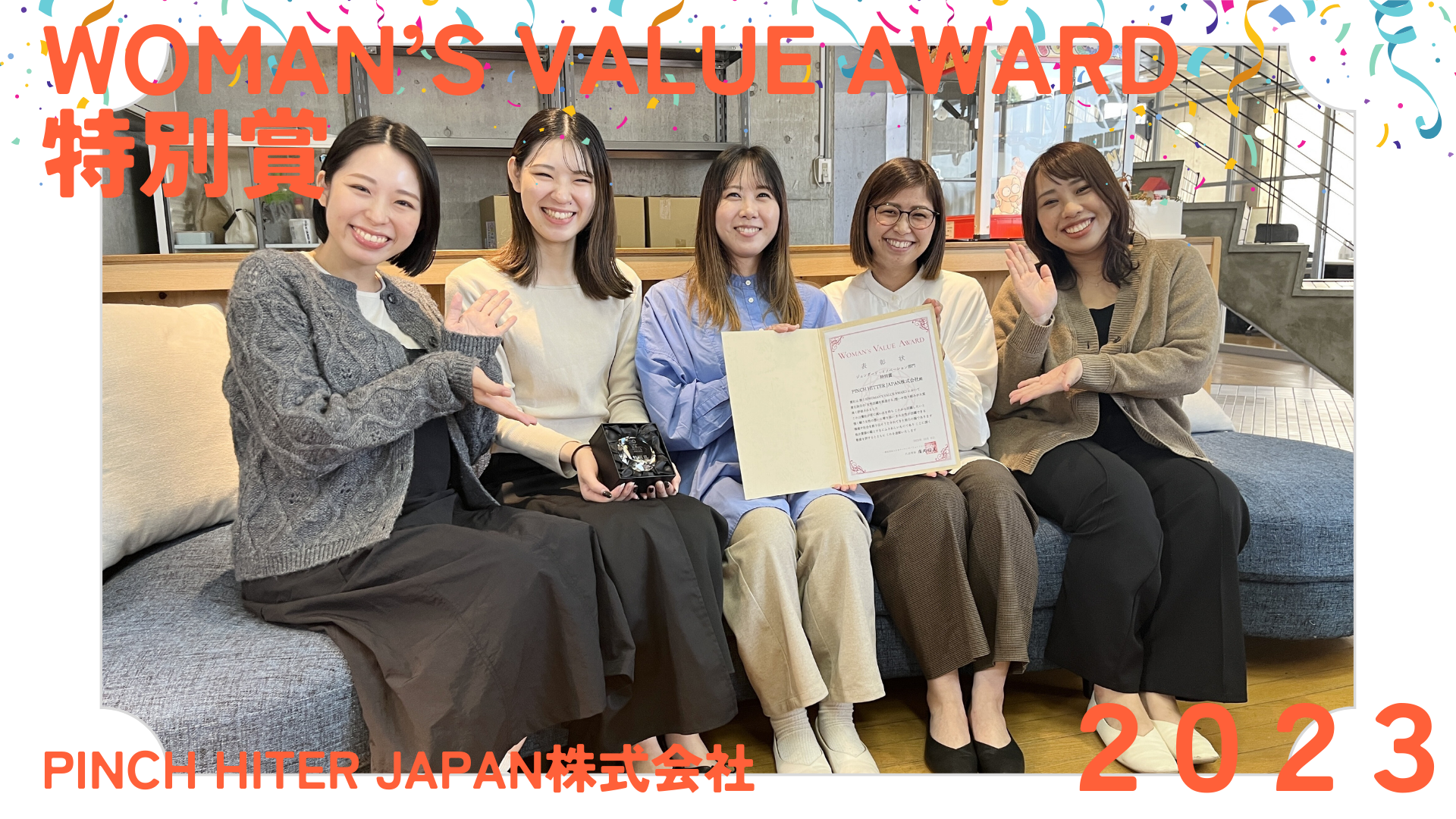 PINCH HITTER JAPAN株式会社(本社:長崎県諫早市、代表取締役社長:吉岡 拓哉)は女性活躍を推進している企業に贈られる「WOMAN’s VALUE AWARD2023」のジェンダード・イノベーション部門にて特別賞を受賞致しました。