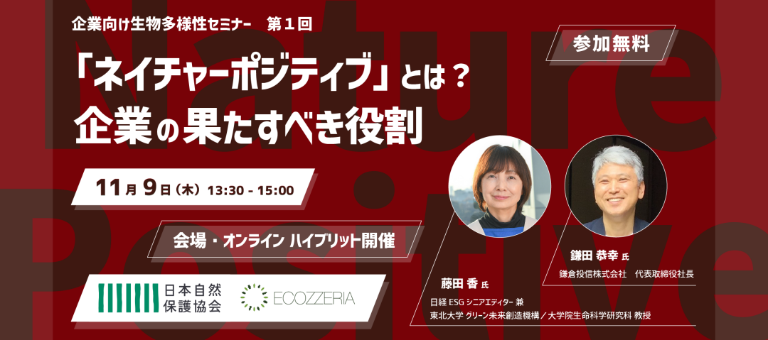 ● 第1回は「『ネイチャーポジティブ』とは?企業が果たすべき役割」と題し 11/9(木)に開催(会場&オンラインのハイブリット開催)