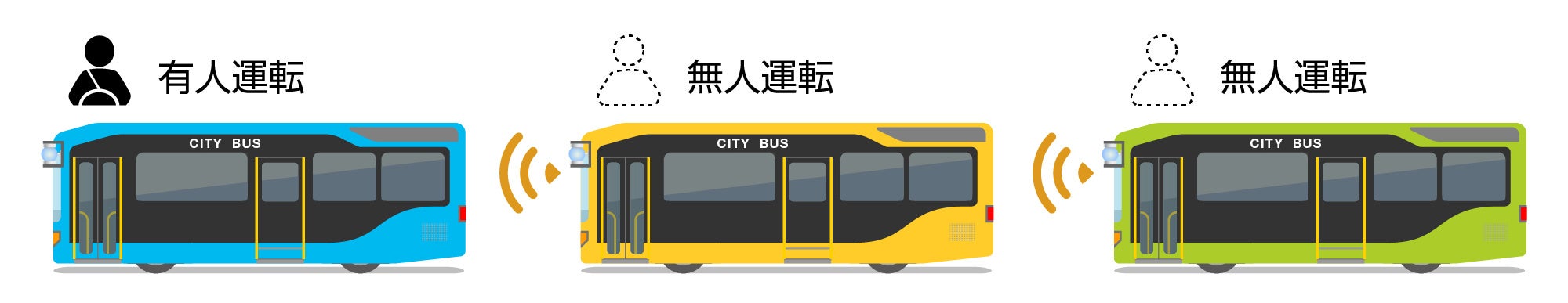 今回の実証実験では、先頭車と後続車間で情報通信を行うことで、複数のバスの隊列走行・自動運転の実現を目指しています。