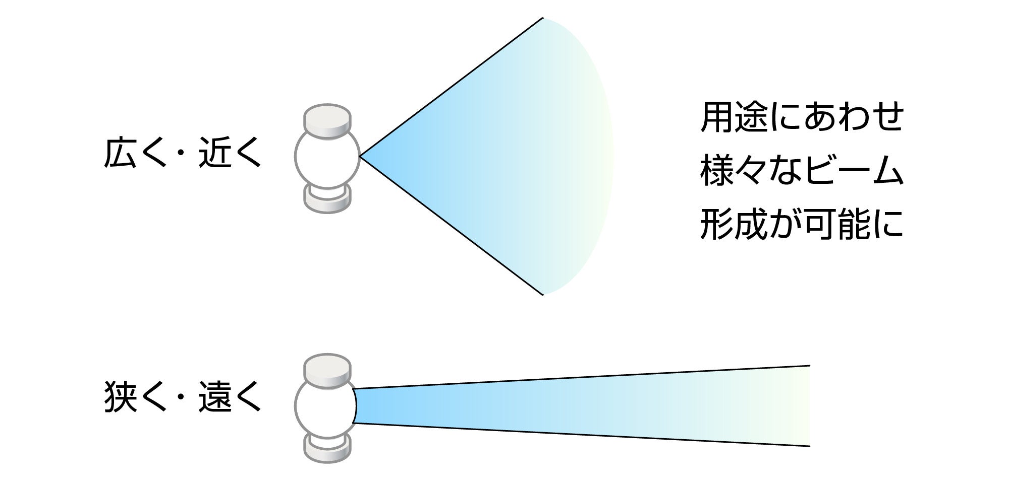 ③ビーム形成技術を使い、センシングなどに用いられるレーダーへの応用も期待