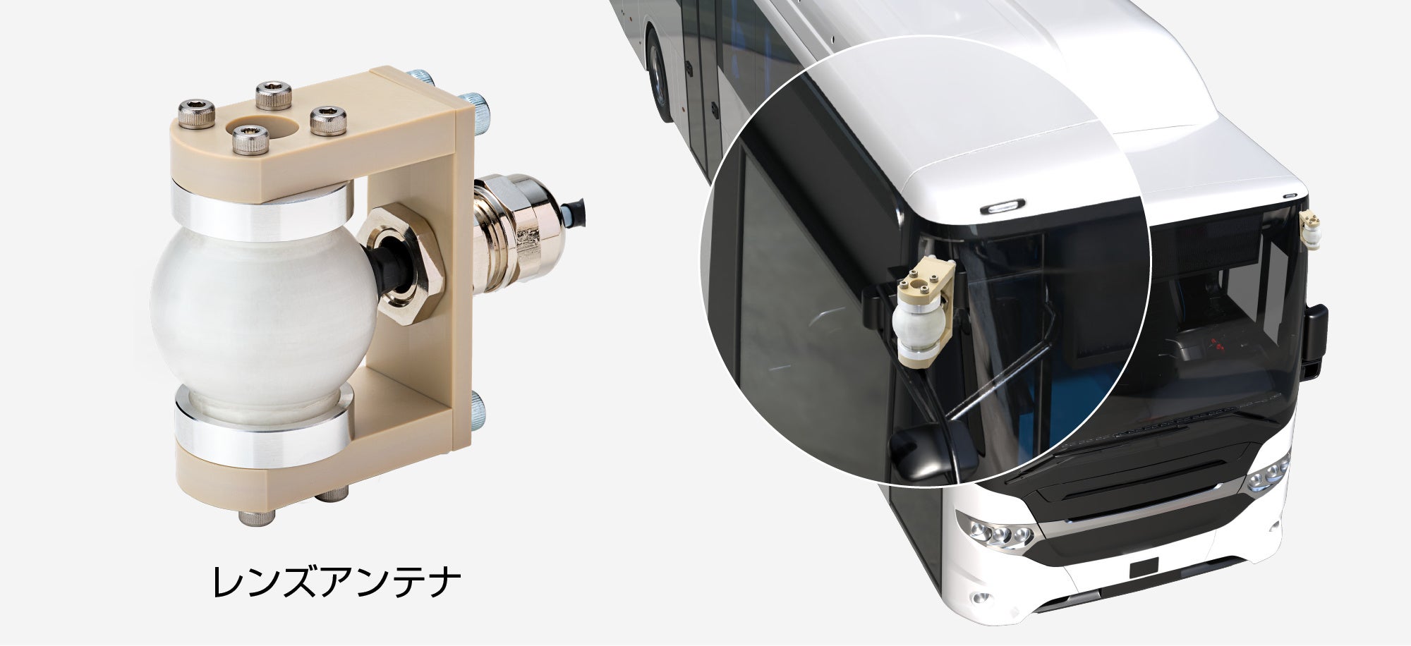 今回採用された特殊ガラスを用いたレンズアンテナは、バスの自動運転・隊列走行に必要な条件を満たすべく、開発に着手。当社の技術力を集結させて完成させました。