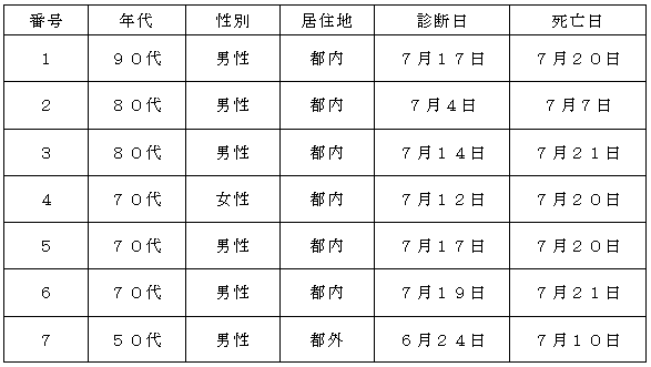 新型コロナウイルスに関連した患者の死亡について business Twitter Facebook はてブ Pocket LINE コピー 2022.07.23 この記事は約1分で読めます。 都内で新型コロナウイルスに感染した方が死亡されましたのでお知らせします。 お亡くなりになった方のご冥福をお祈り申し上げます。 ※ 患者・御家族の人権尊重・個人情報保護に御理解と御配慮をお願いします。