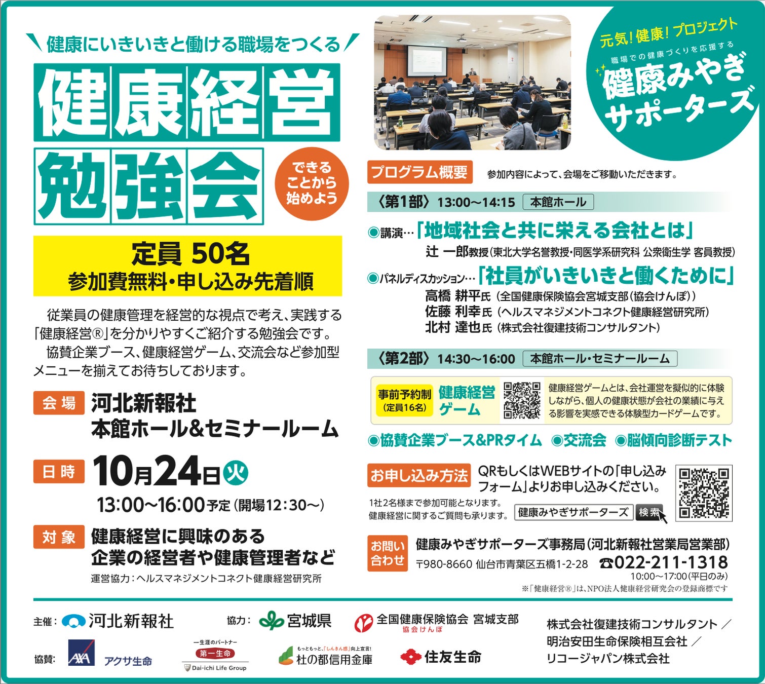 会場:河北新報社本館ホール&セミナールーム|仙台市青葉区五橋1-2-28