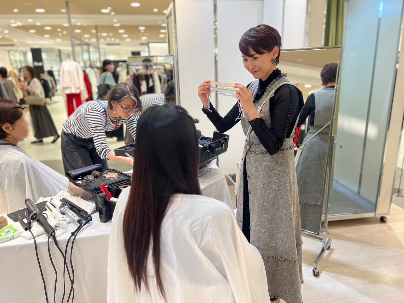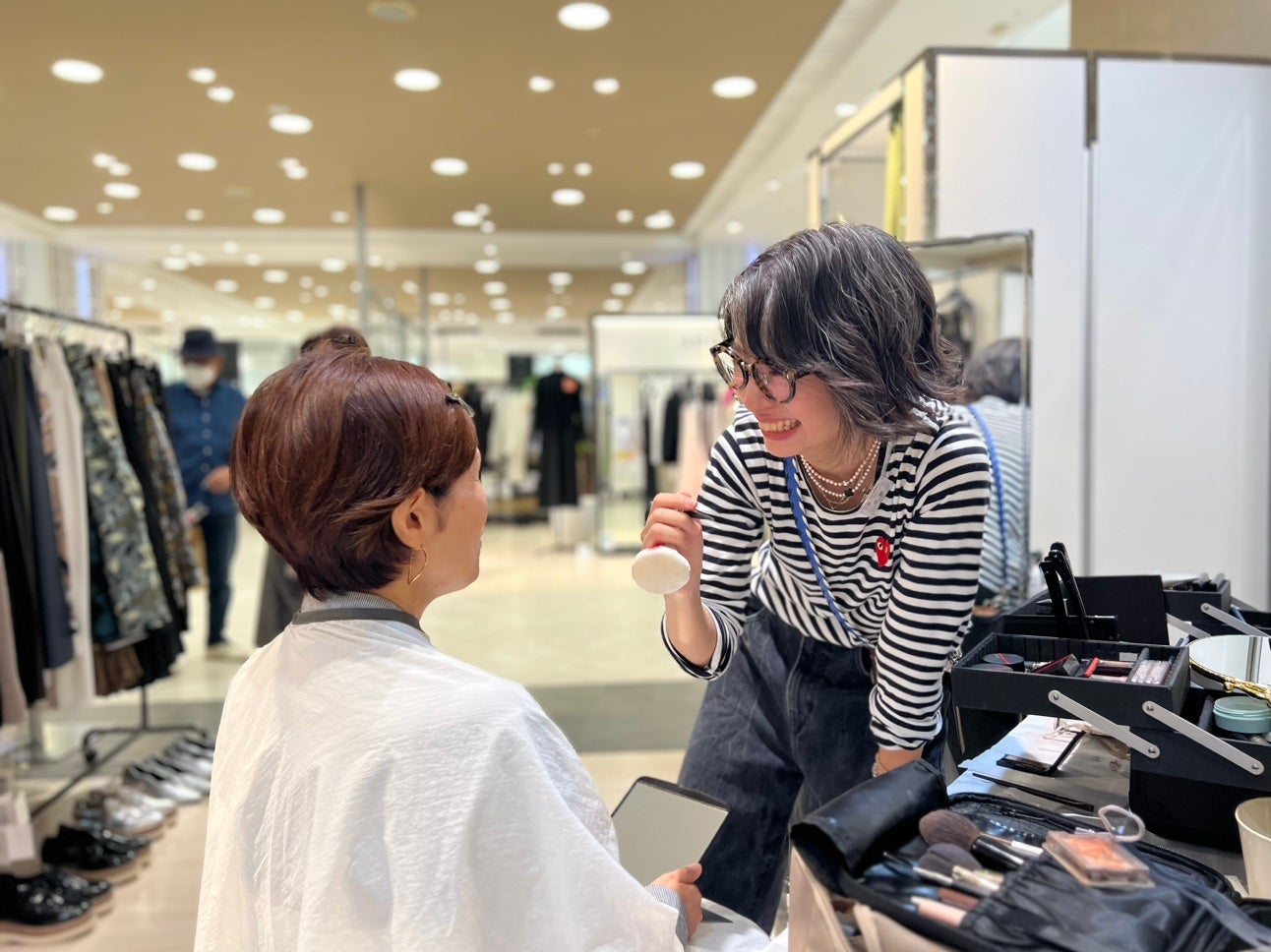 ご自身のお気に入りのアクセサリーに合わせた提案希望の方、骨格診断・カラー診断でのお買い物同行で失敗した経験をお持ちの方、いつも黒・グレー・白のみになってしまって帰る勇気が持てない方、百貨店はなんか怖くて来れなかったという方、ショップの店員さんに声かけられるのが苦手という方、それぞれのお悩みを抱えて、お一人、友達と、母娘でご来店など、たくさんの方がご来店されました。