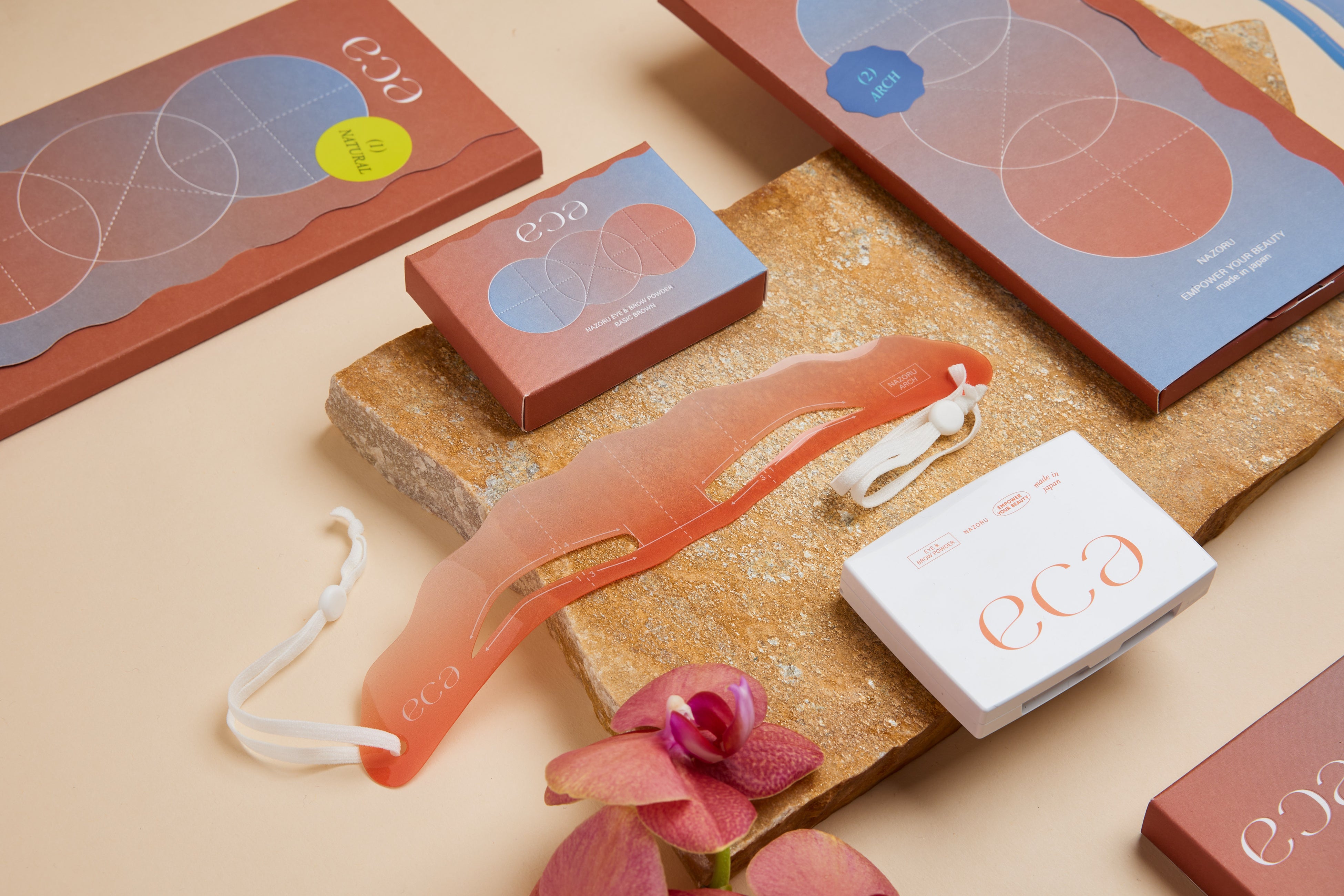 なぞるだけで誰でも簡単に正解眉が叶うオリジナル眉テンプレート『NAZORU』。サロンのクオリティが誰でも簡単に再現できるメイクのお悩み救世主。cawaluで体験した当日の雰囲気を再現する中で、特にメイクの再現が難しいとのお声から、顔の印象の8割を占めると言われている「眉毛」に着目して開発しました。