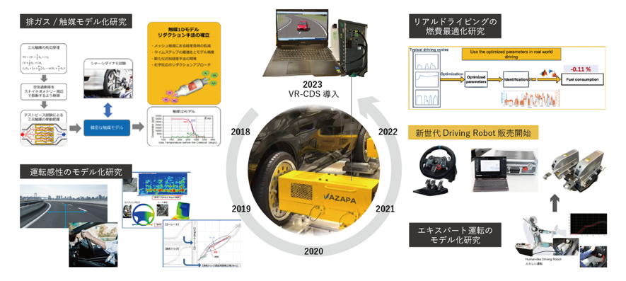 これまでもAZAPAと早大は自動車性能に関わる各機能システムのモデルベース化の研究を共同で進めてきており、排ガス/触媒モデルや運転感性の研究、エキスパート運転のモデル化〜自動運転ロボットの開発、そしてリアルドライビング(実路走行)環境におけるエネルギー効率の最適化など、様々な領域でエンジン・HEV・BEVを問わず新たなモデルベース開発ソリューションを生み出し続けてまいりました。今回発表させて頂くVR-CDSは、更に一段高い目標の達成へ向けた次世代モビリティ開発ソリューションの共同開発を加速するためのコアに位置付けております。