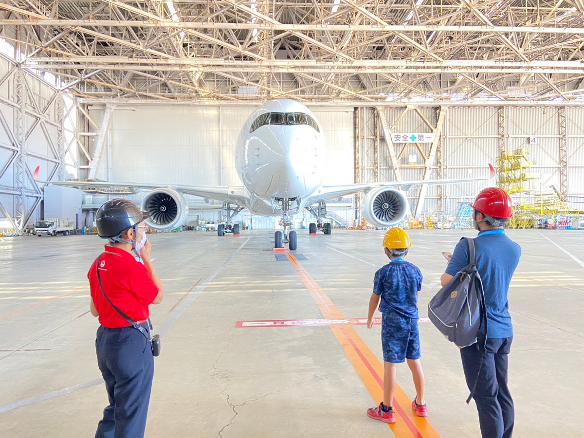 大きな飛行機を間近で見れる飛行機の格納庫見学に加え、飛行機を眺めながらの機内食体験や、飛行機や空の仕事を学べるミュージアム体験にこどもたちをご招待。格納庫見学では、普段見ることができない角度や距離感で飛行機を見ることができて、こどもたちも大興奮でした。