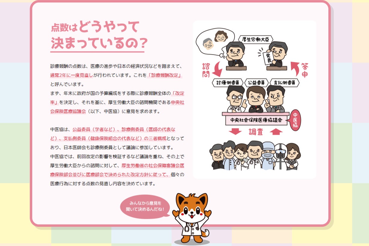 そんな誤解を解き、「診療報酬」について正しく知ってもらうため、日本医師会では、ホームページ内に「なるほど!診療報酬」というコーナーを設けています。