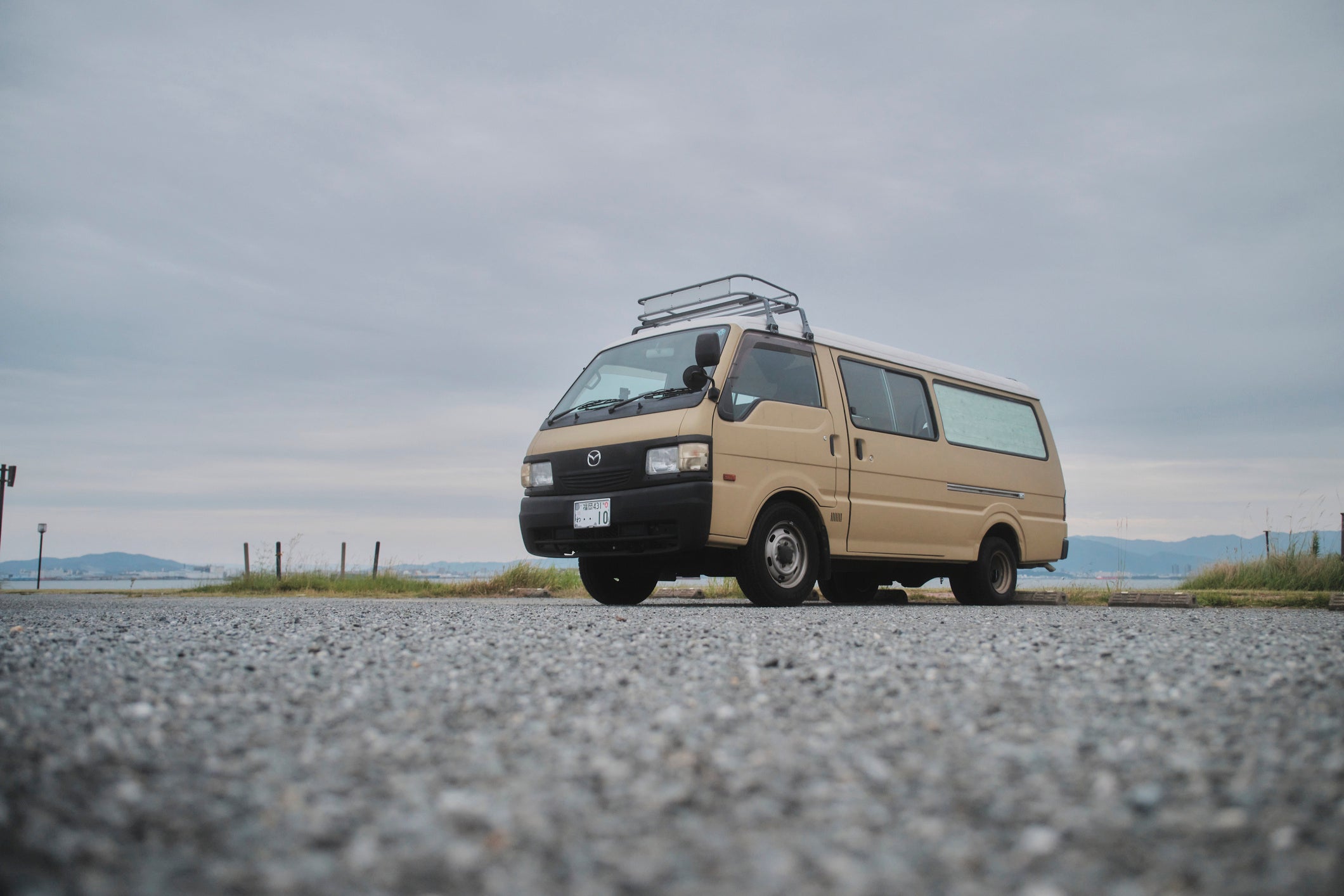 バンタイプの国産車両をベースにカスタムしており、5人乗り、最大宿泊人数5名までご乗車いただけます。どなたでも運転しやすいAT車。ドライブレコーダー、ETC等の基本機能も完備しています。