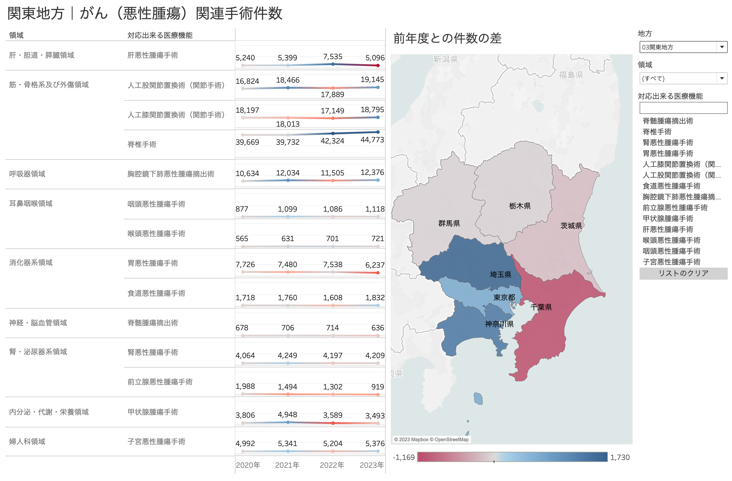 がん(悪性腫瘍)に関する23種類の術式別件数データ