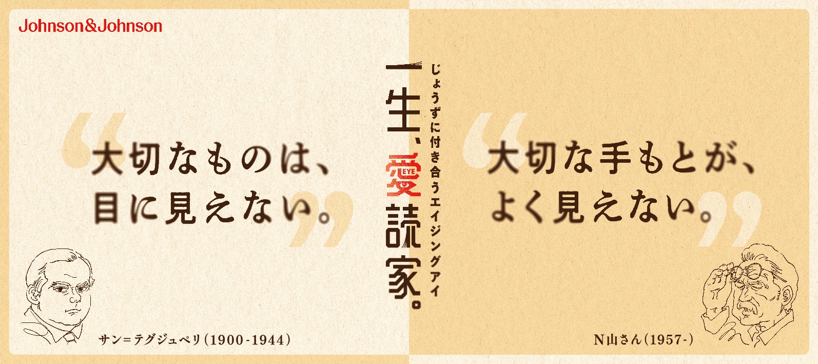 「一生、愛(EYE)読家。」の活動の一環として、蔦屋書店の「コンシェルジュ文庫」フェア内にて「文豪の名言」オリジナルしおりを配布します(全8種、なくなり次第終了)。しおりの表面には、文豪の“名言”と、それになぞらえたエイジングアイ経験者にありがちな“迷言”を掲載しています。