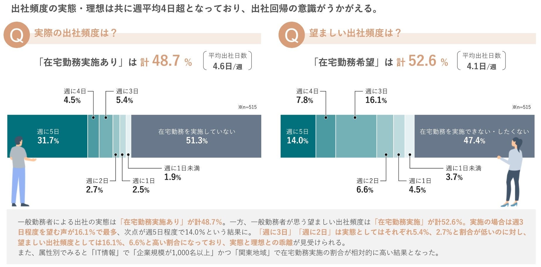 ・平均出社日数は週4日以上!出社回帰がうかがえる結果に