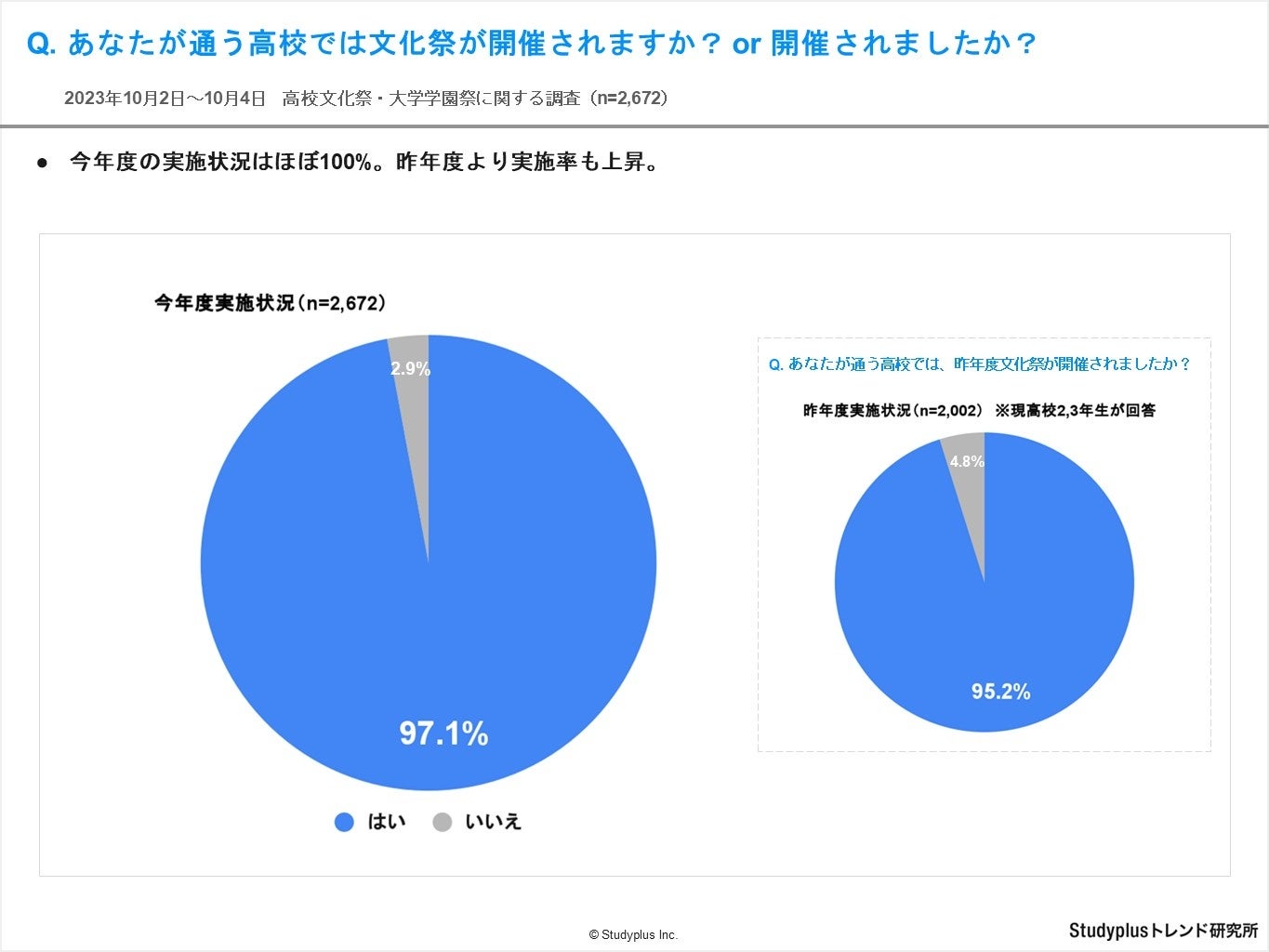 今年に入り、世の中的にリアルイベントやお祭りなどがコロナ前の姿に回帰してきた中で、今回の調査では今年度の高校文化祭の実態を探っていきました。