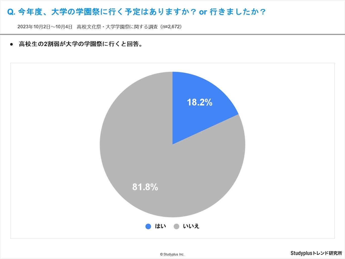・高校生の2割弱が大学の学園祭に行くと回答。