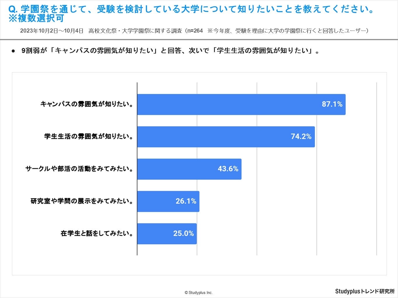 また、今回の調査ではまさにシーズン最中の大学学園祭に関しても、高校生にヒアリングしました。