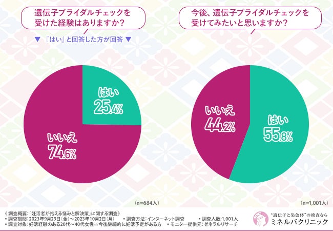 妊活経験者の2割がブライダルチェックを受けている!遺伝子疾患の発見の精度を高めるためには?