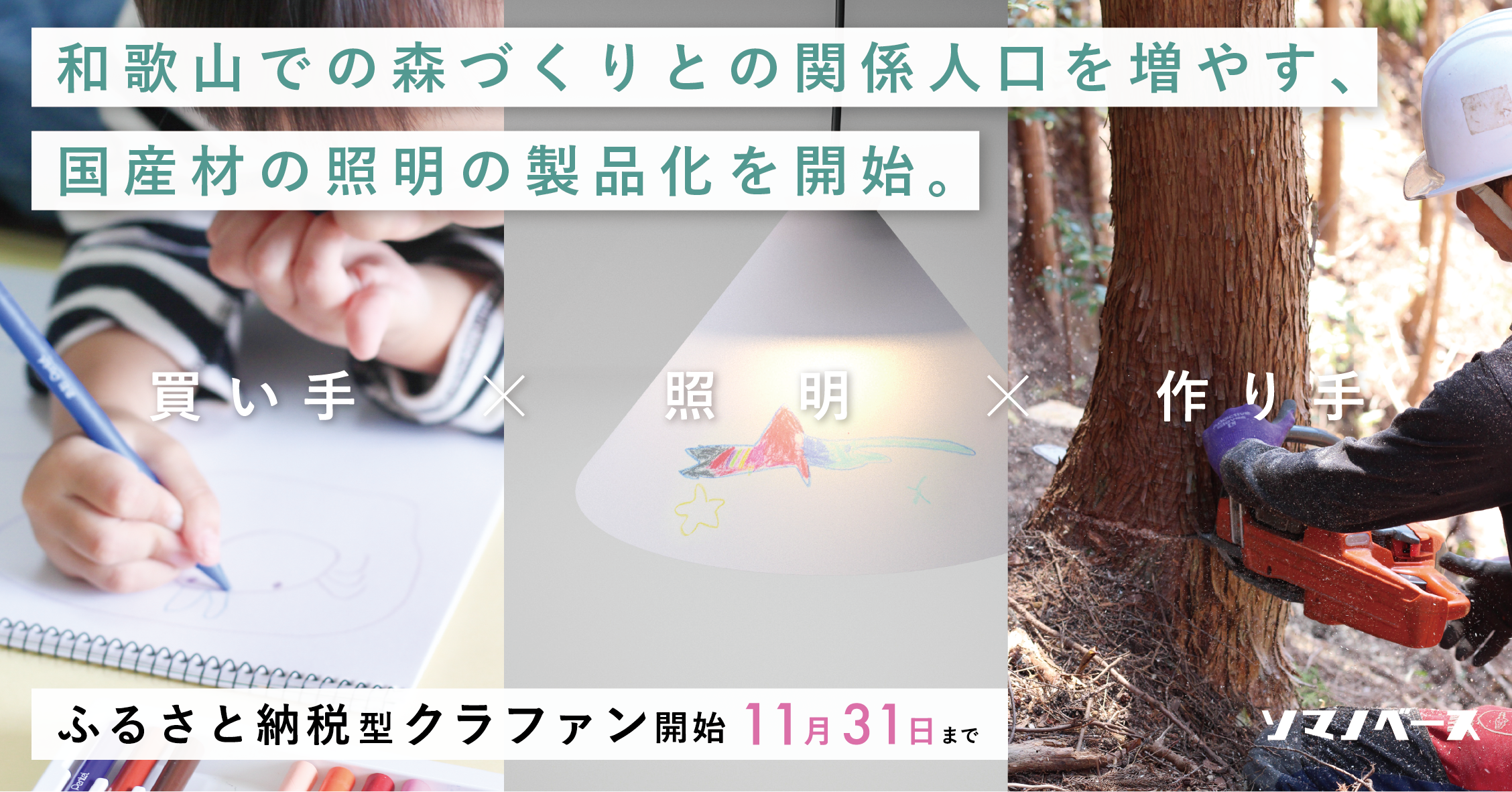 素材となる木を育てることから、木材として伐り出し、ペンダントライトの形に削り上げるまで…トメルは全ての工程を和歌山で制作を行います。その中で私たちが拠点とする田辺市は、自然が豊かで、様々なお仕事の方のコラボレーションが生まれるまち。私たちも、田辺市にお住まいの皆様、様々なお仕事をされる皆様のお力をお借りして、皆で森づくりを行なっています。私たちのクラウドファンディングを通して、田辺市を知ったり、興味を持ったりする方が一人でも多く増えると嬉しく思います。