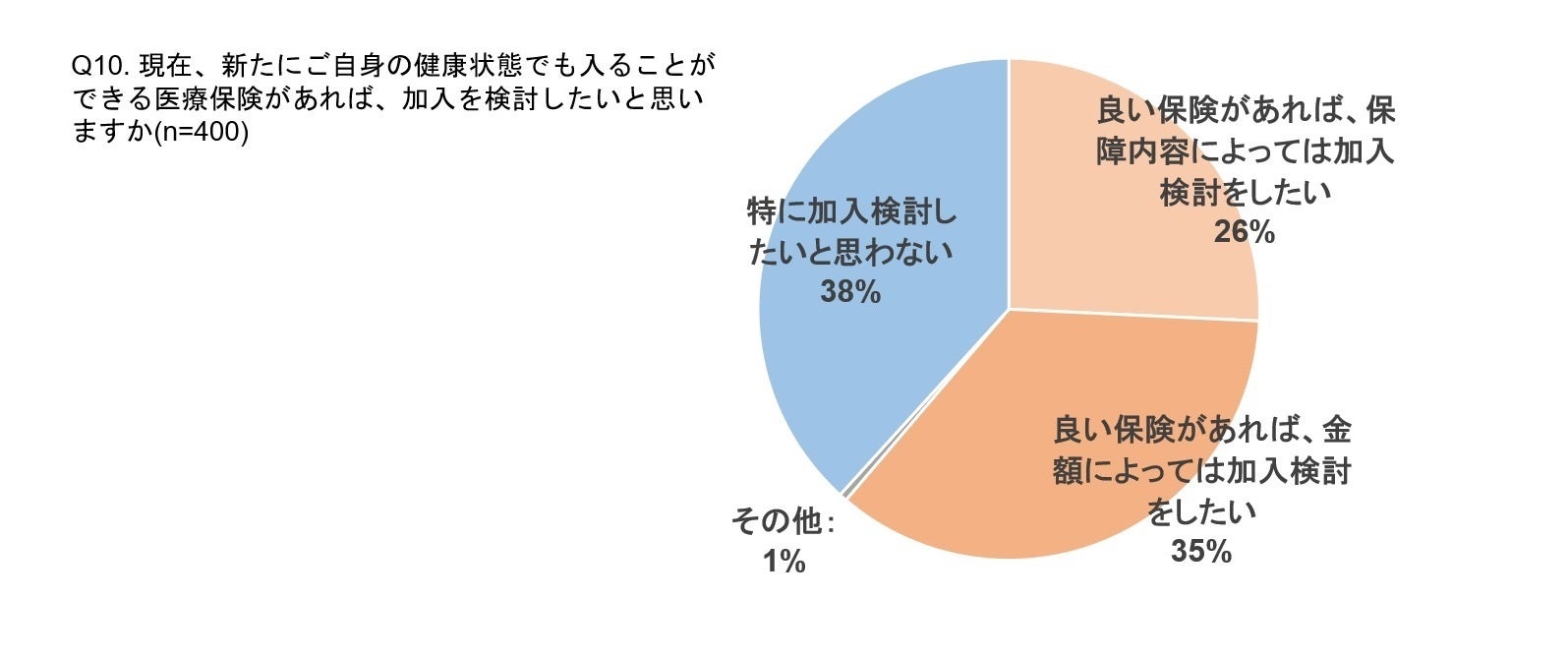 - がん経験者の6割は「金額、保障内容によっては良い保険があれば加入を検討したい」と思っている