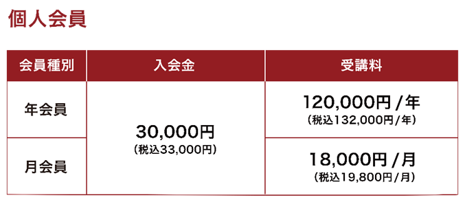 ① 教育理念に基づいた会員限定公開のオンライン講座が月額1万円から常に見放題。