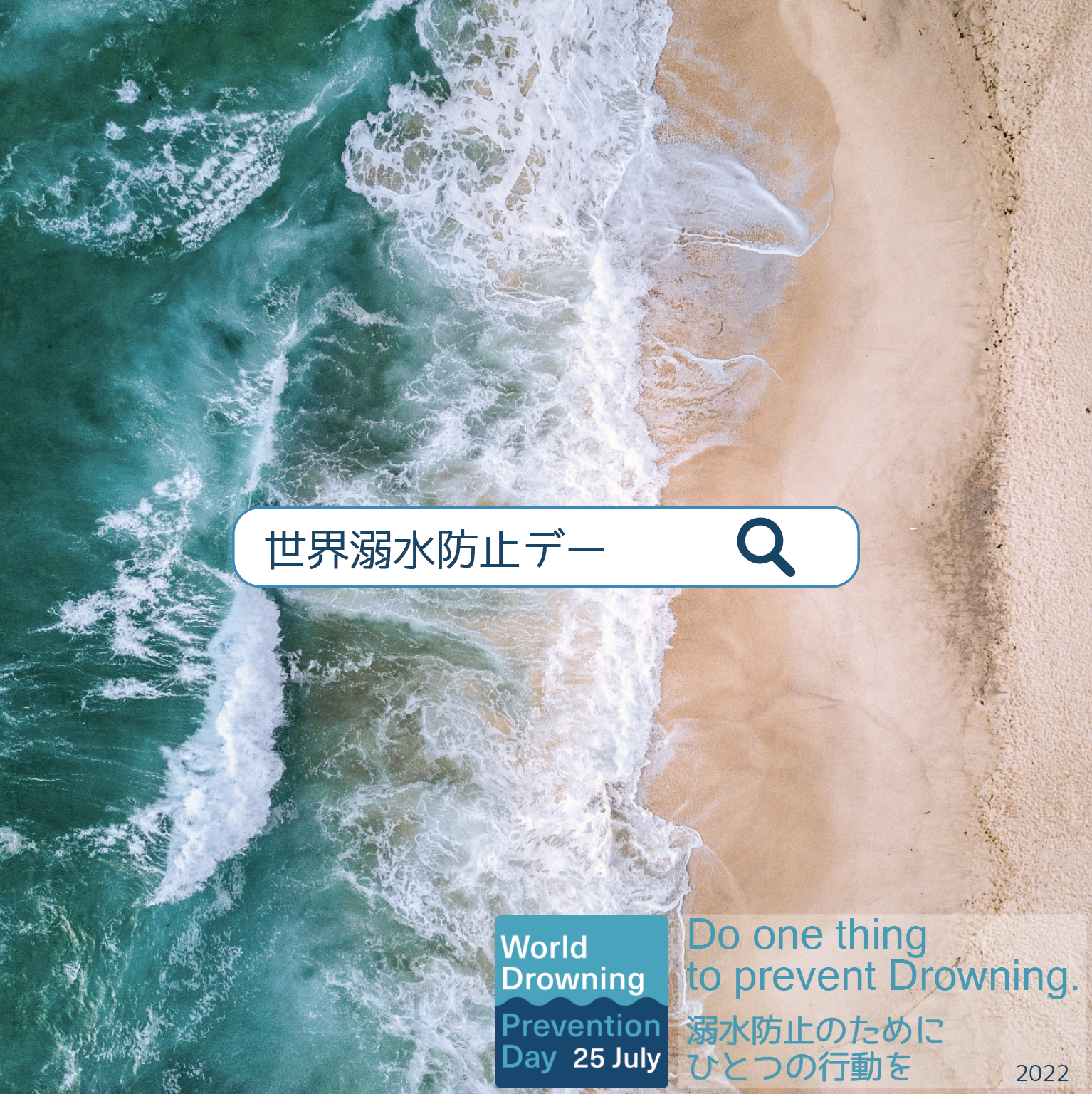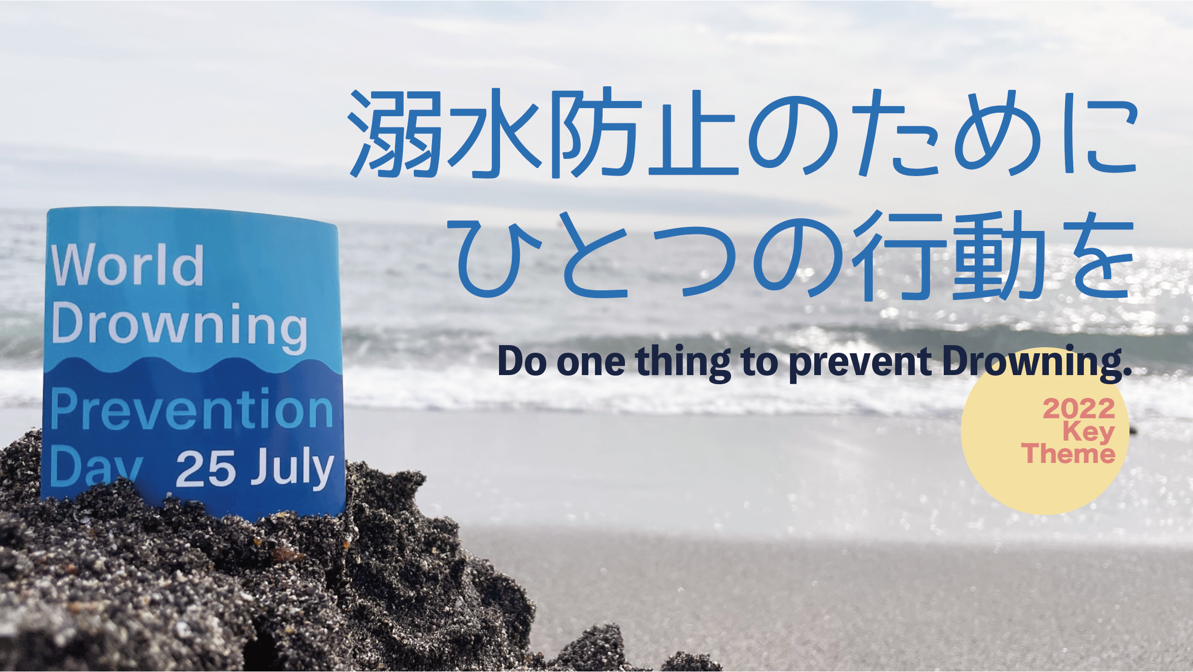 2022年の溺水防止デーの世界共通テーマ「Do one thing to prevent Drowning」 溺水防止のためにひとつの行動をすることで、みんなで溺水事故をなくしましょう。