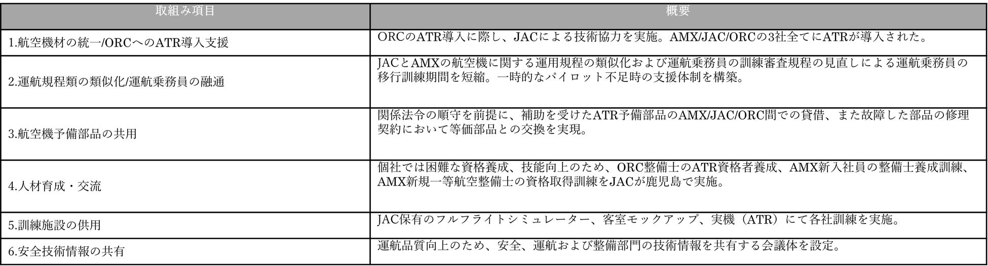 2019年10月にAMX,ORC,JAC,ANA,JALの5社は地域航空サービスアライアンス有限責任事業組合(以下「EAS LLP」)を設立し活動を開始しましたが、新型コロナウィルス感染症拡大による影響を受けながらも地域航空サービスの維持、発展に資する協業に取組み、「系列を超えたコードシェア」をはじめ「航空機予備部品の共用化」、「機材更新に伴う新造機導入支援」などさまざまな協業の成果*1を得ることができました。