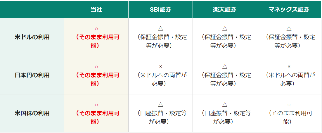 【3】振替や設定は不要!米国株口座内の株式、現金(米ドル、日本円)がそのまま利用可能!