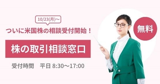 松井証券では、現在、「銘柄の探し方」や「売買の材料探し」などに関するツールの操作説明から、日本株の個別銘柄の「取引タイミング」まで、幅広い内容に関するご相談を承る「株の取引相談窓口」をご用意しています。サービス開始から現在まで、日本株取引に関する相談のみ受け付けておりましたが、新たに米国株取引に関する相談の受付も開始いたします。