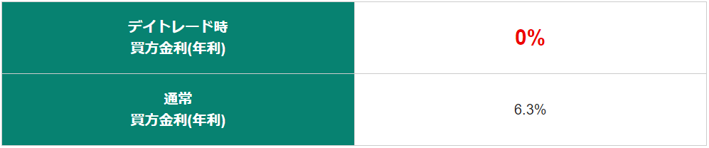 *4 デイトレードは、売買を一日単位で終了させる取引となります。日本祝日の場合は、前営業日と併せて1日とみなしますので、例えばGWなどの連休の場合、連休中に決済いただいた取引はすべて金利が無料になります。